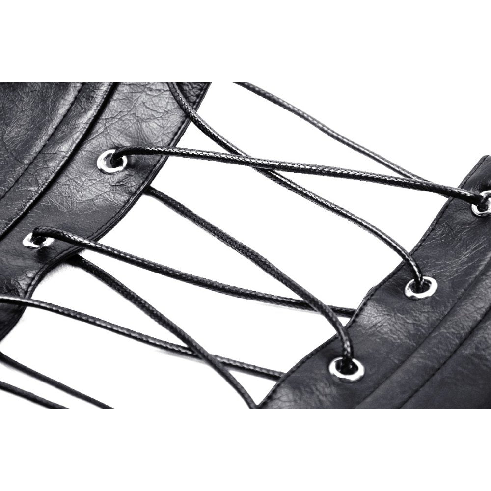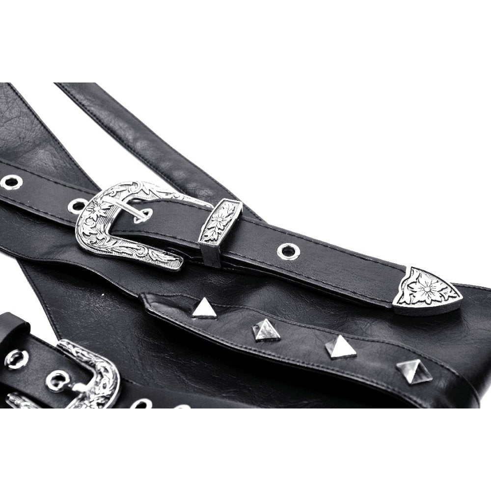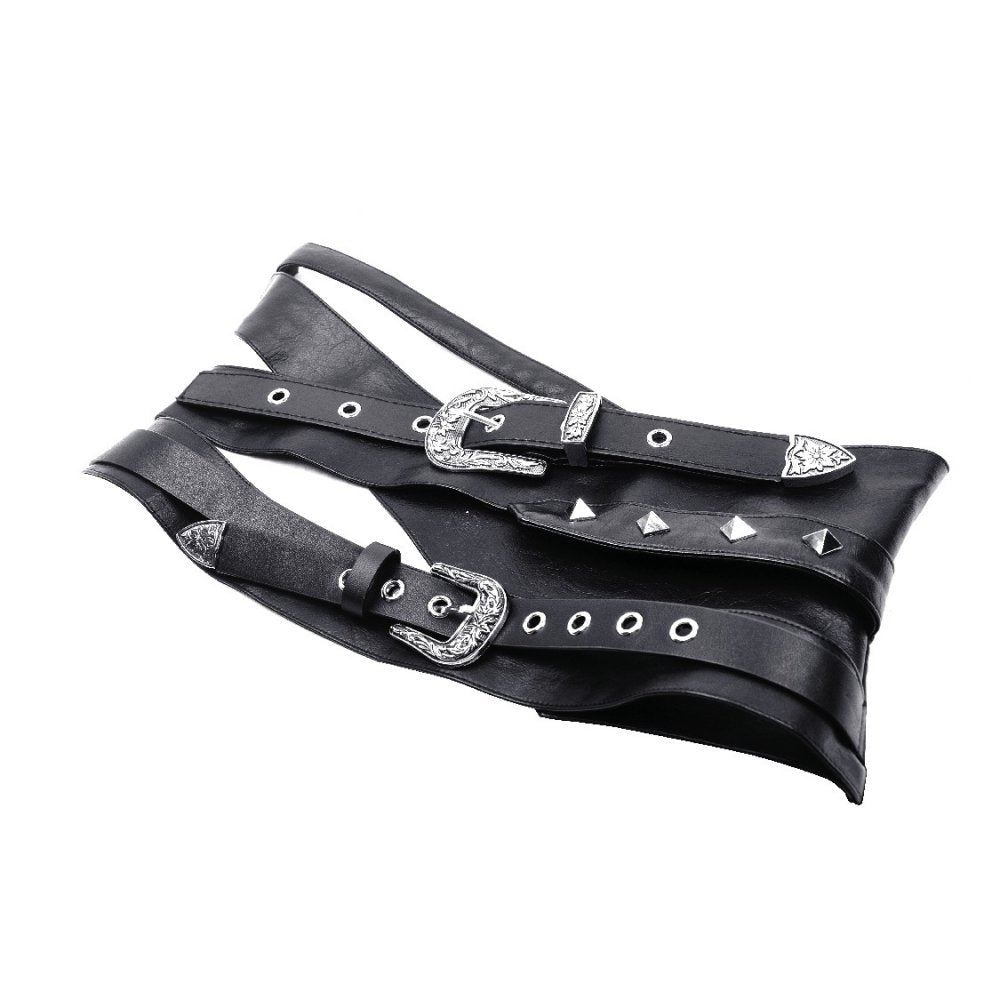 Wear it over dresses, skirts, or longline tops for a dramatic silhouette. The adjustable buckle closures ensure a comfortable and secure fit while adding to its unapologetically dark aesthetic. Perfect for alternative fashion fans who want to add a touch of post-apocalyptic or steampunk inspiration to their wardrobe.