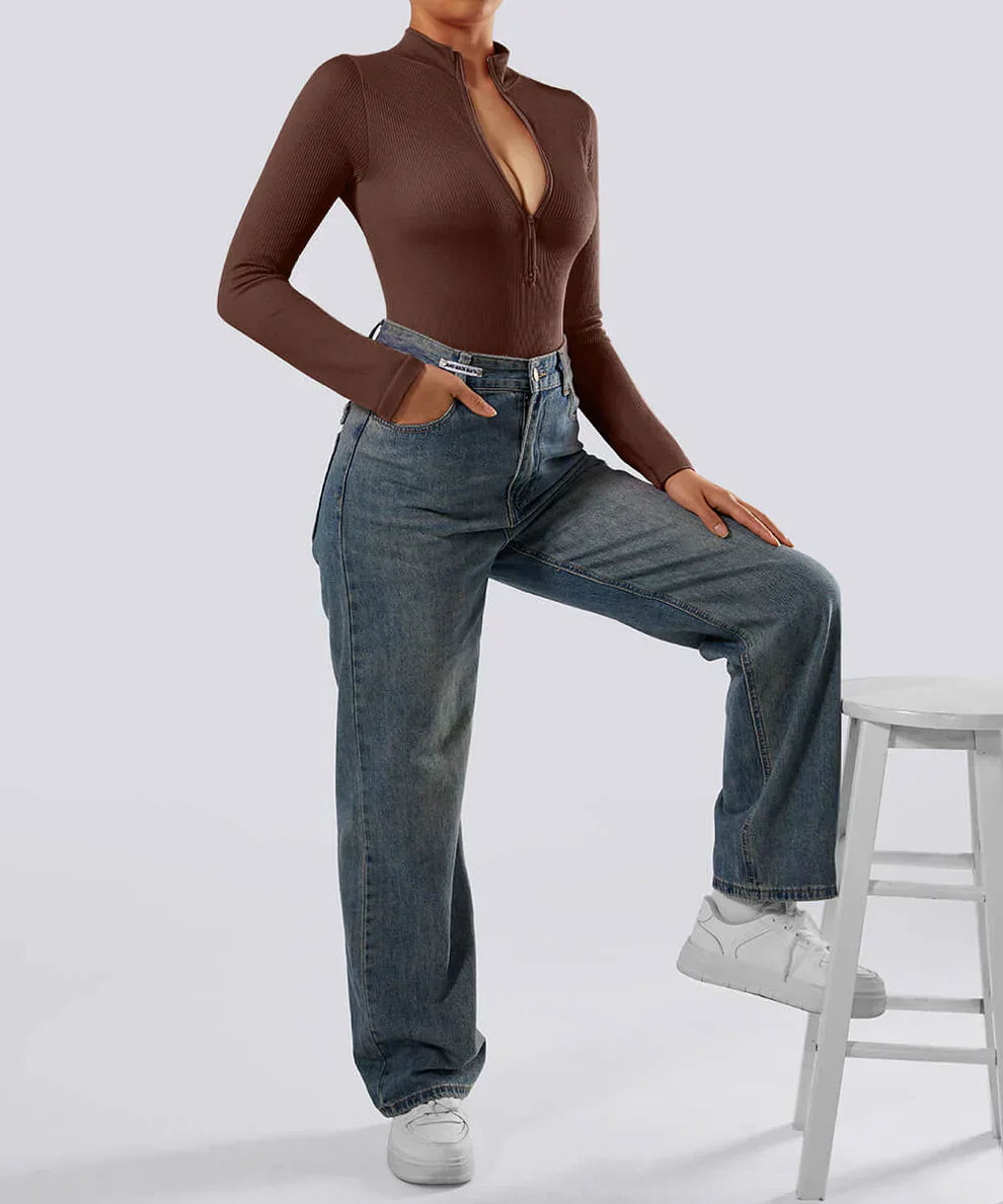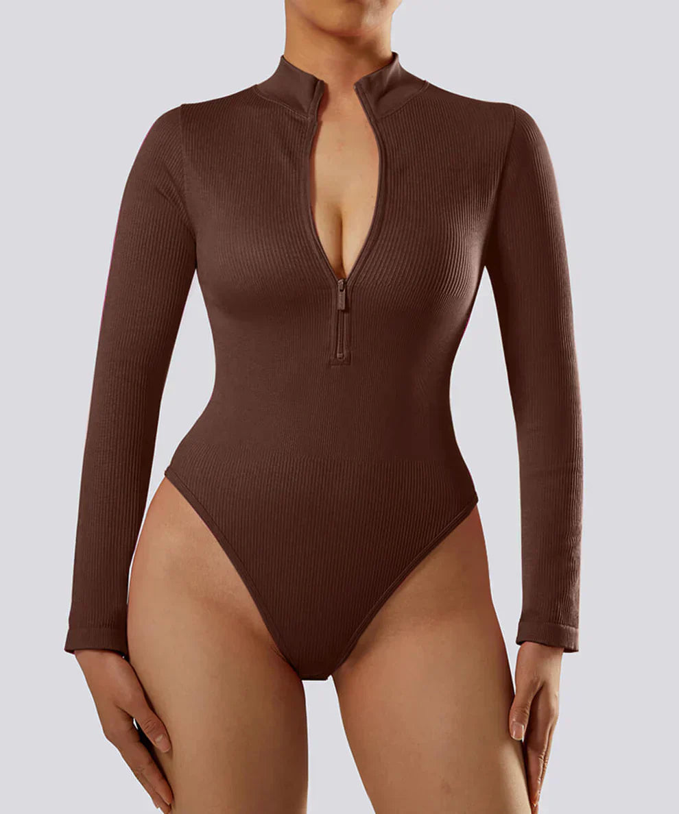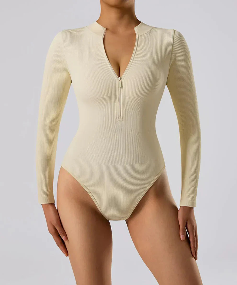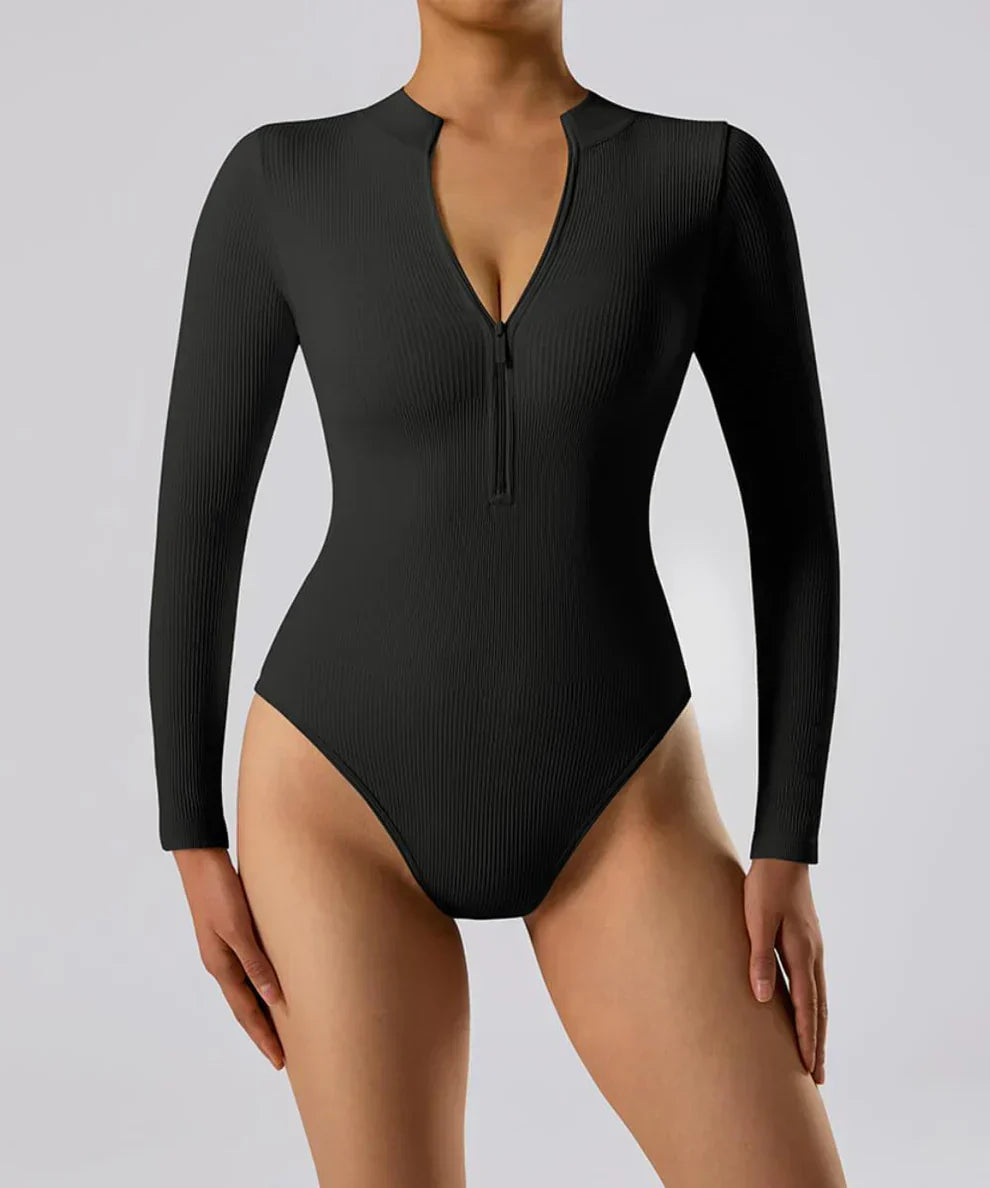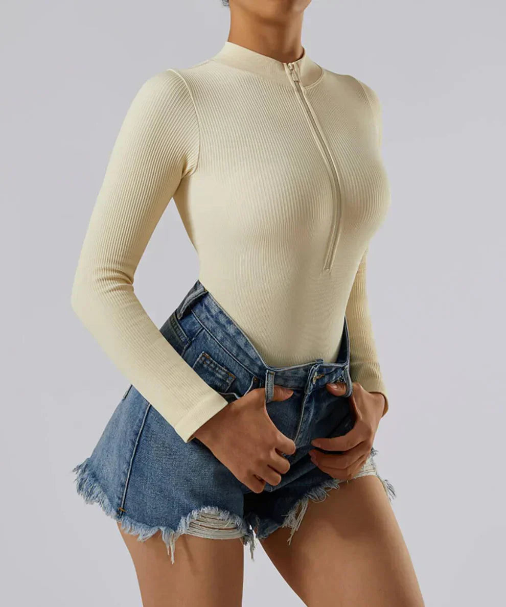 Bodysuit long côtelé avec fermeture éclair