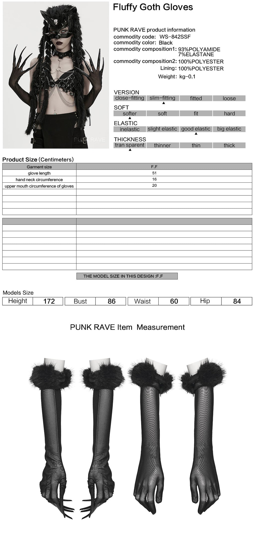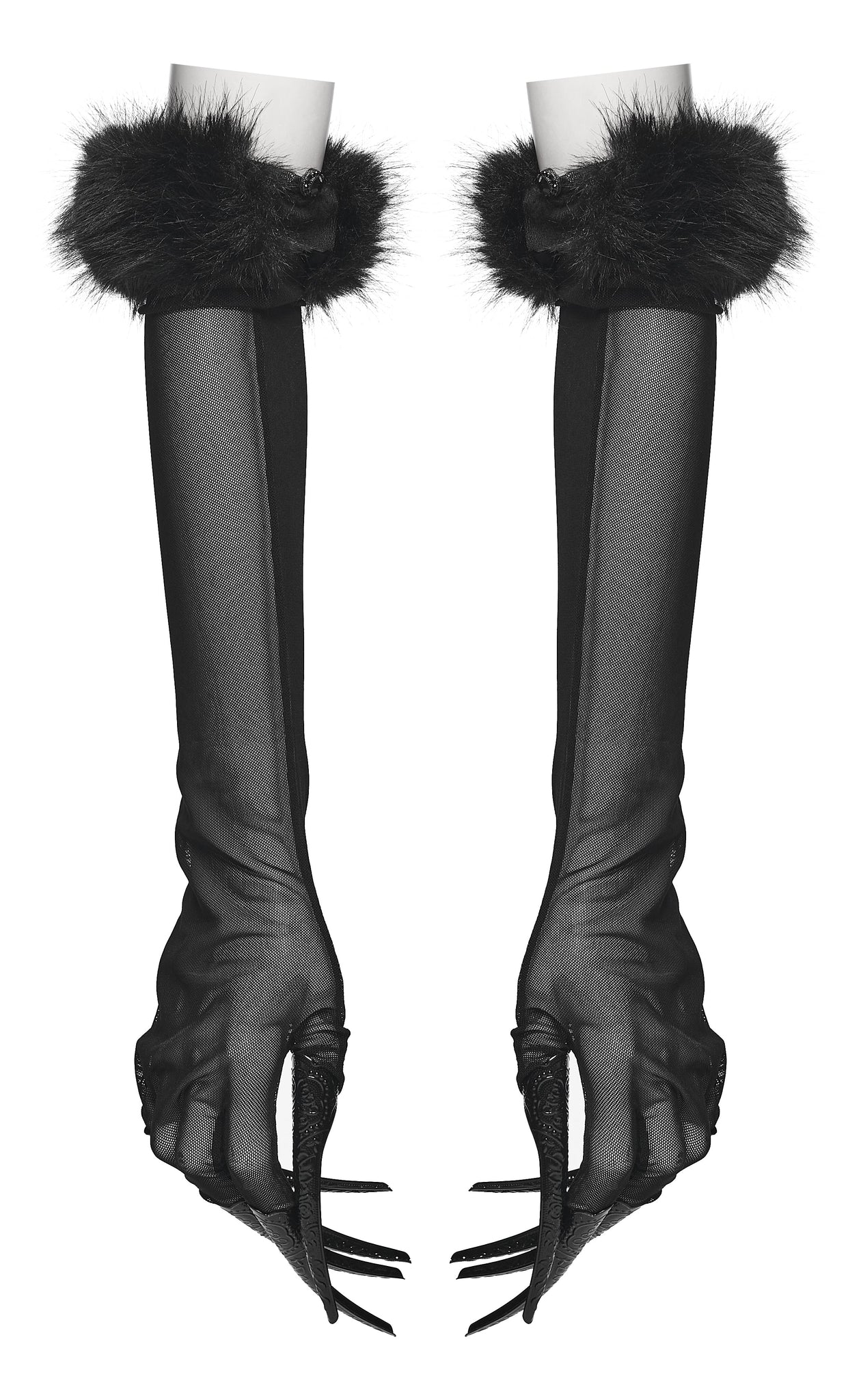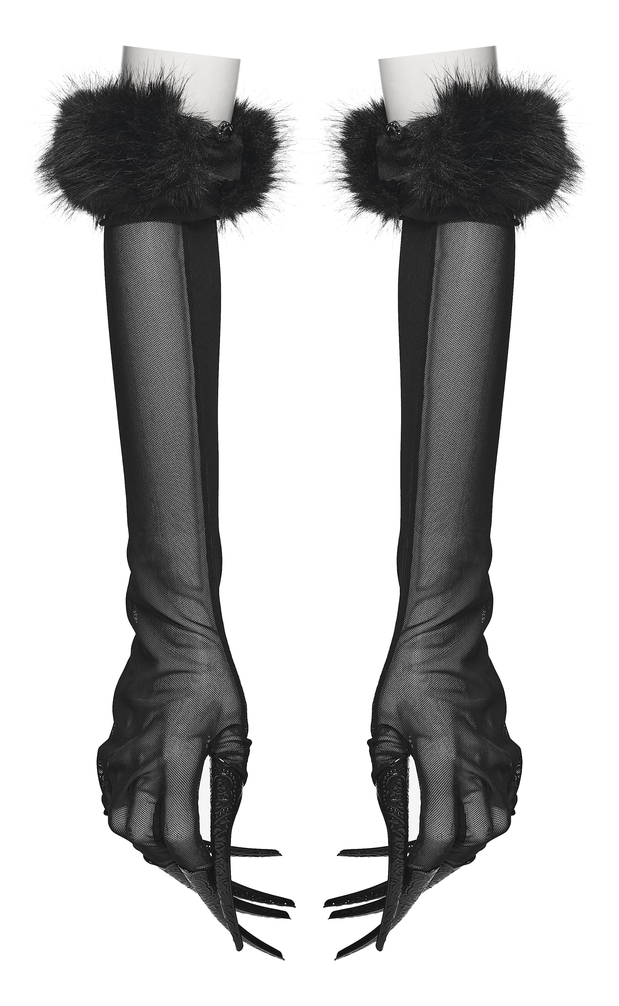 Unleash your inner dark diva with the Punk Rave Fluffy Goth Gloves – a seductive mix of sheer stretch mesh, faux fur, and sinister glamour. These dramatic opera-length gloves are the ultimate statement piece, finished with luxurious faux fur cuffs and built-in sculptural claws that echo mythical beasts and vampiric royalty.