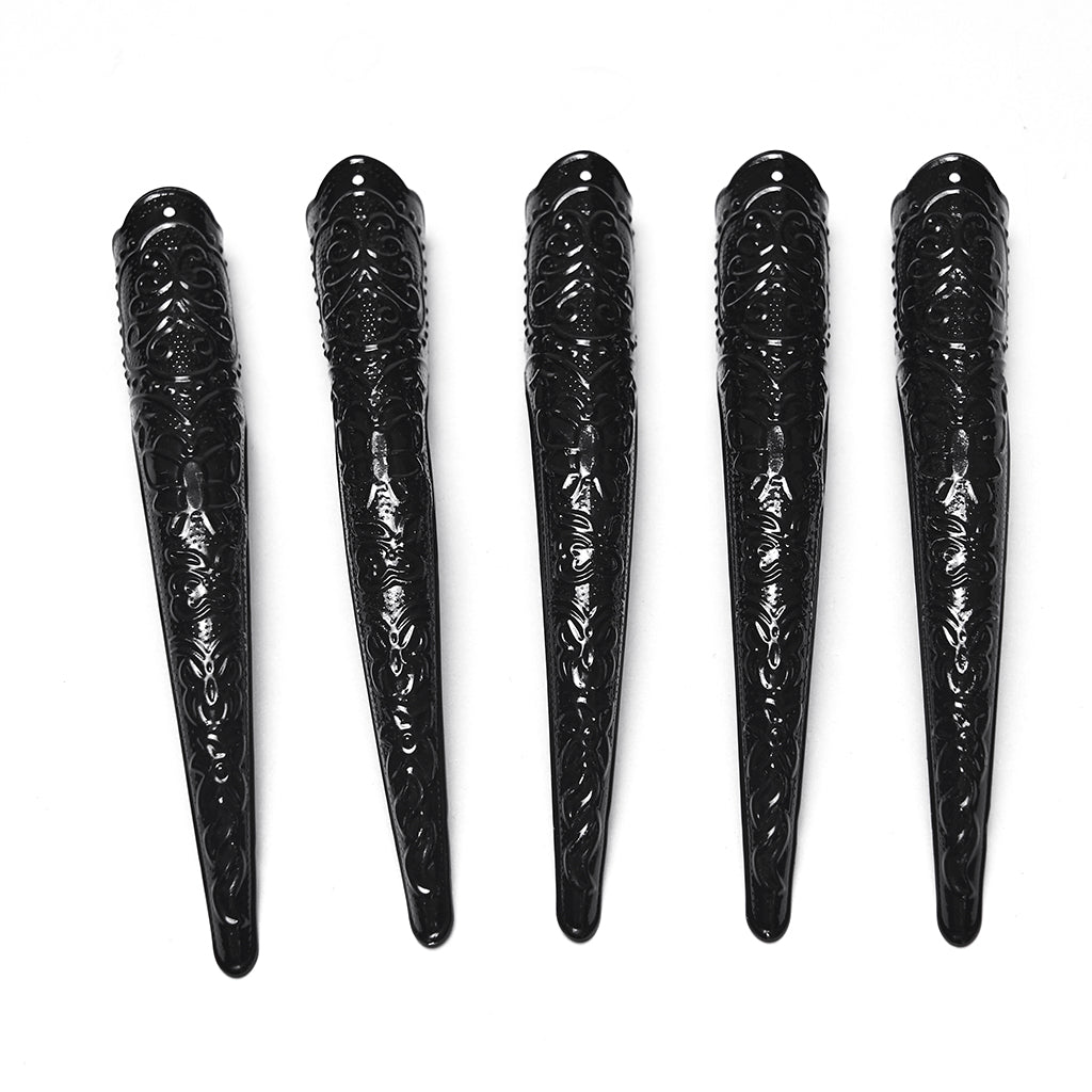 - Fixed faux claws sculpted into fierce talons for a feral, gothic look